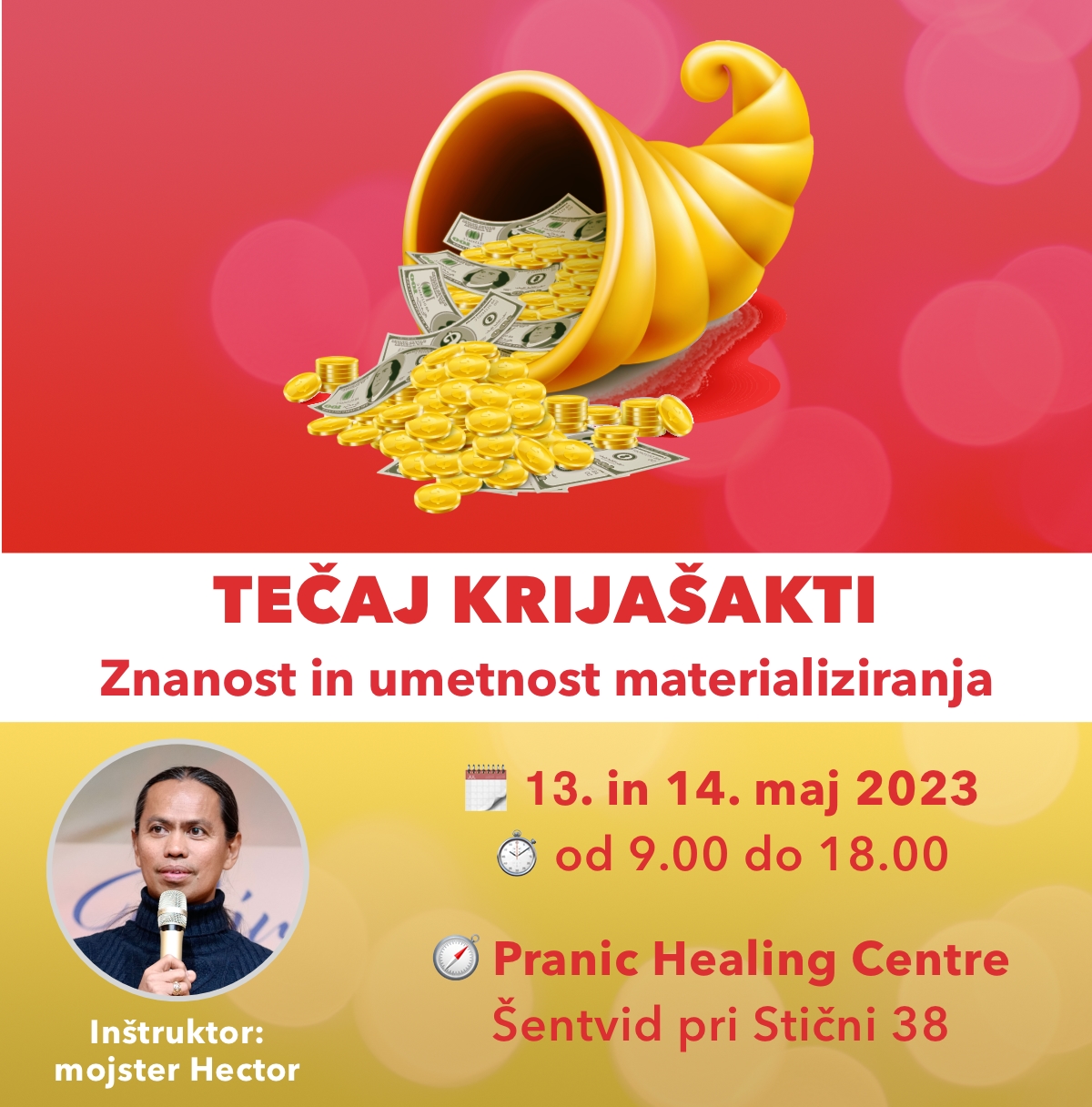 Ko aktivno ustvarjate srečo, razvijate pravilni odnos za privlačevanje obilja in uspeha ter odstranjevanje starega negativnega programiranja glede denarja, hkrati pa ustvarjate močne miselne vzorce za neprestano privlačevanje obilja. Krijašakti prinaša svobodo, da sledite svojim sanjam in vas opolnomoči, da dosežete svoje cilje. Ta delavnica je priporočljiva za vse ljudi na duhovni poti. Duhovnost in materializem sta praktično dve strani istega kovanca.