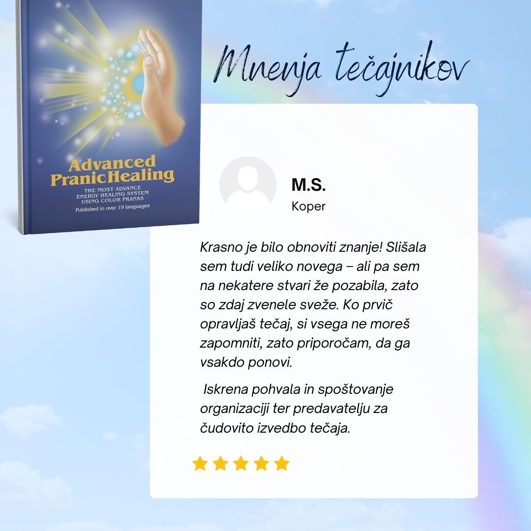 Pranic Healing je ena izmed najbolj sistematičnih, znanstveno podprtih in hitro delujočih metod energijskega zdravljenja na svetu. Že osnovni tečaj je mnogim odprl oči in srca, zdaj pa je čas za naslednji korak.