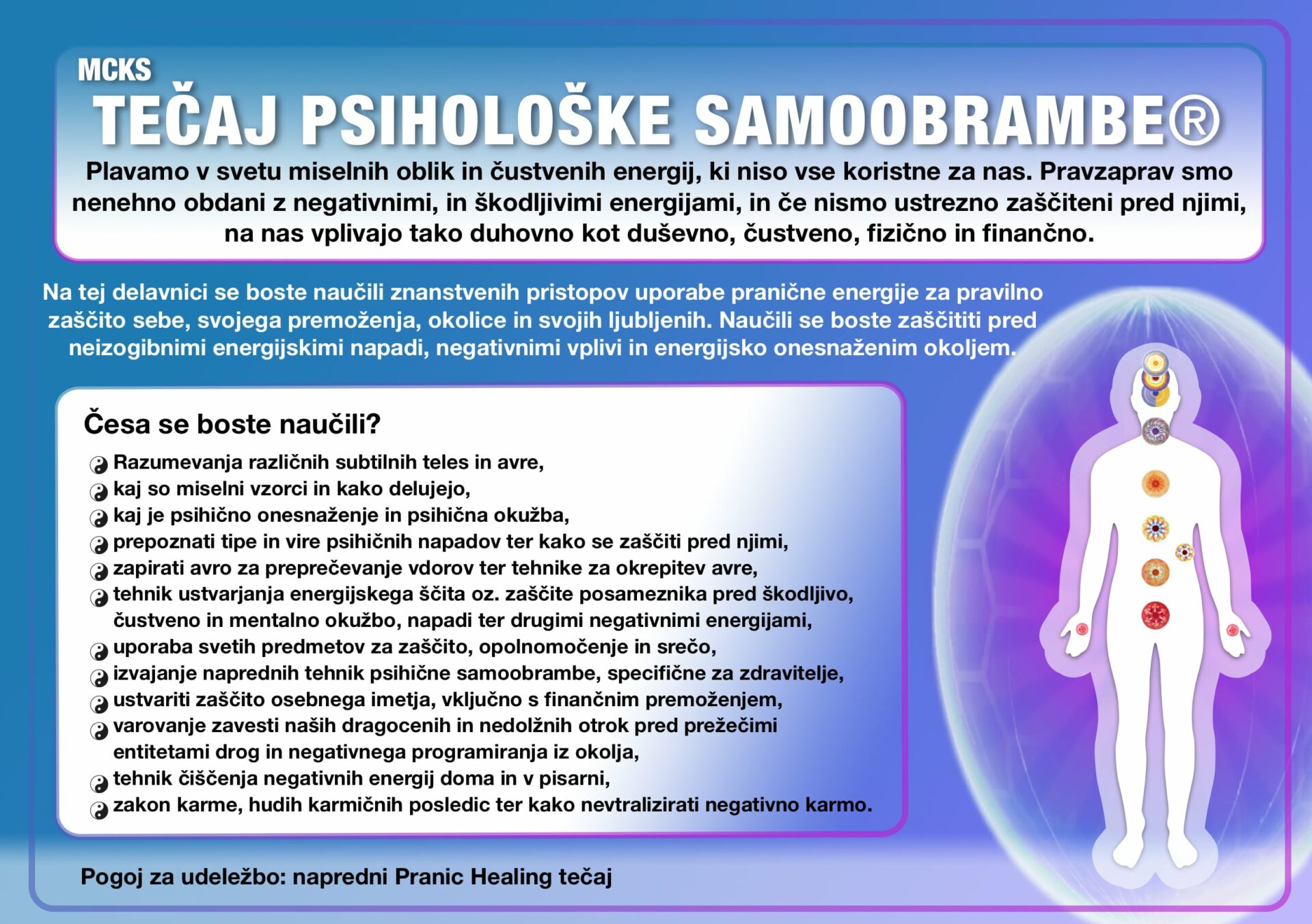 Na tej delavnici se boste naučili znanstvenih pristopov uporabe pranične energije za pravilno zaščito sebe, svojega premoženja, okolice in svojih ljubljenih. Naučili se boste zaščititi pred neizogibnimi energijskimi napadi, negativnimi vplivi in energijsko onesnaženim okoljem.